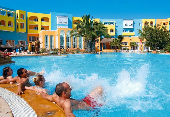 avec une aire de jeux aménagée : animation pour les enfants de 4 à 14 ans. Ouvert de 9h00 à 12h30 et de 15h00 a 18h00 • AVEC PARTICIPATION o 1 Discothèque ouverte à partir de 23H00 (Entrée gratuite, consommations payantes) o 1 Centre de Balnéo « Sunny Vital » : Bain maure, massage… .(Avec réservation). o Billard, baby foot, jeux video. o Location de Quads, o Equitation, promenades à dos de chameaux o Sports nautiques motorisés : Banana, parachute ascensionnel, ski nautique, balade en mer. (Avec réservation). o A proximité, (env. 10 mn en voiture) : 3 terrains de golf 18 trous et de 2 de 9 trous o Excursions à l’intérieur du pays